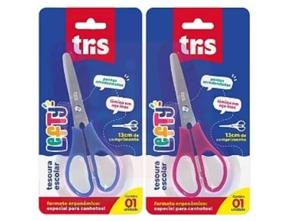 TESOURA ESCOLAR LEFTY TRIS, 13CM LEVE E CONFORTÁVEL.